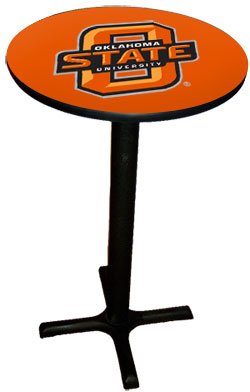 Get ready to crowd around the pub table that combines functionality with your love of the Oklahoma State Cowboys. Your colorful photographic laminate Oklahoma State logo occupies the full-size of its 24â surface, plenty of space for large groups of Cowboy fans. Restaurant-grade construction makes this an ideal pub table for residential or commercial use. The Oklahoma State pub table stands at bar height, 41.5â tall, and with a brushed metal X-base that features adjustable footers for stability, donât worry if itâs standing room only.